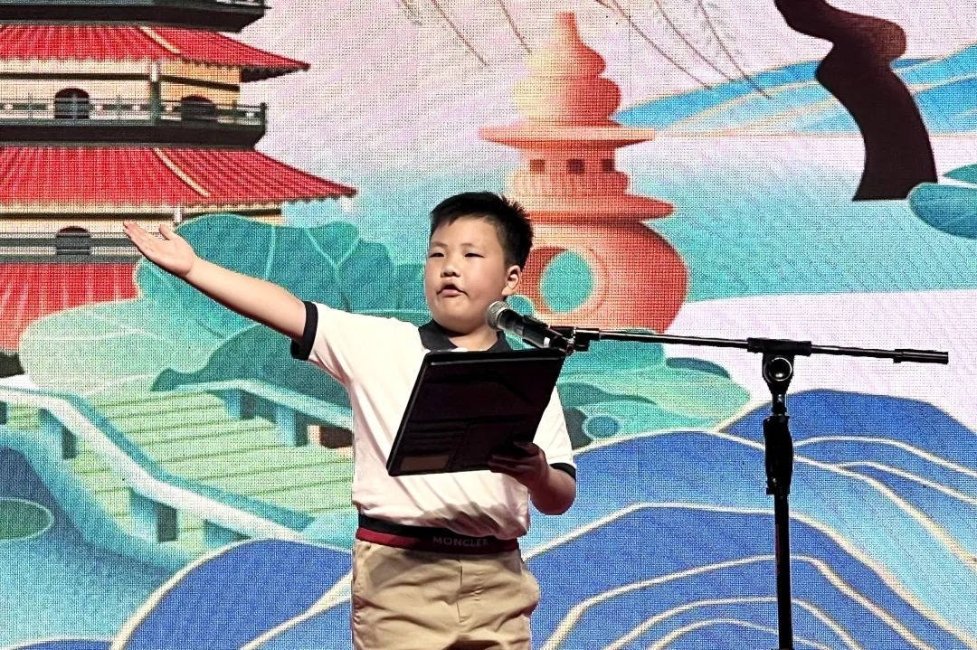 詩朗誦《我要(yào)寫中國(guó)》,張峻滔小(xiǎo)朋(péng)友(yǒu)又(yòu)用(yòng)铿锵有(yǒu)力的(de)吐詞,充沛飽滿的(de)情✔感,自(zì)信大(dà)方的(de)形象讴歌(gē)了(le)新一(yī)代鼎美(měi)人(rén)“不(bù)斷實現(xiàn)人(rén)民(mín)對(duì)美(měi)好(hǎo)生(shēng)活向往”的(de)中國(guó)奮鬥精神。