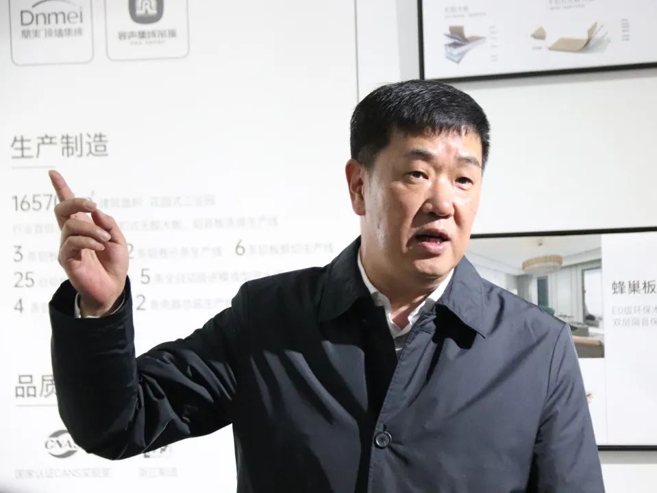 在浙江鼎美智裝股份有限公司展廳,徐春來(lái)一(yī)行(xíng)看(kàn)工(gōng)藝技(jì)術(shù),問(wèn)應用(yòng)落地(dì),聽(tīng)張轲介★紹鼎美(měi)20多(duō)年(nián)來(lái)不(bù)斷創新發展及未來(lái)規劃,并結合公司各類應用(yòng)場(chǎng)景及創新方式對(duì)鼎美(měi)裝配化(huà)裝修的(de)高(gāo)質量發展優勢進行(xíng)介紹。