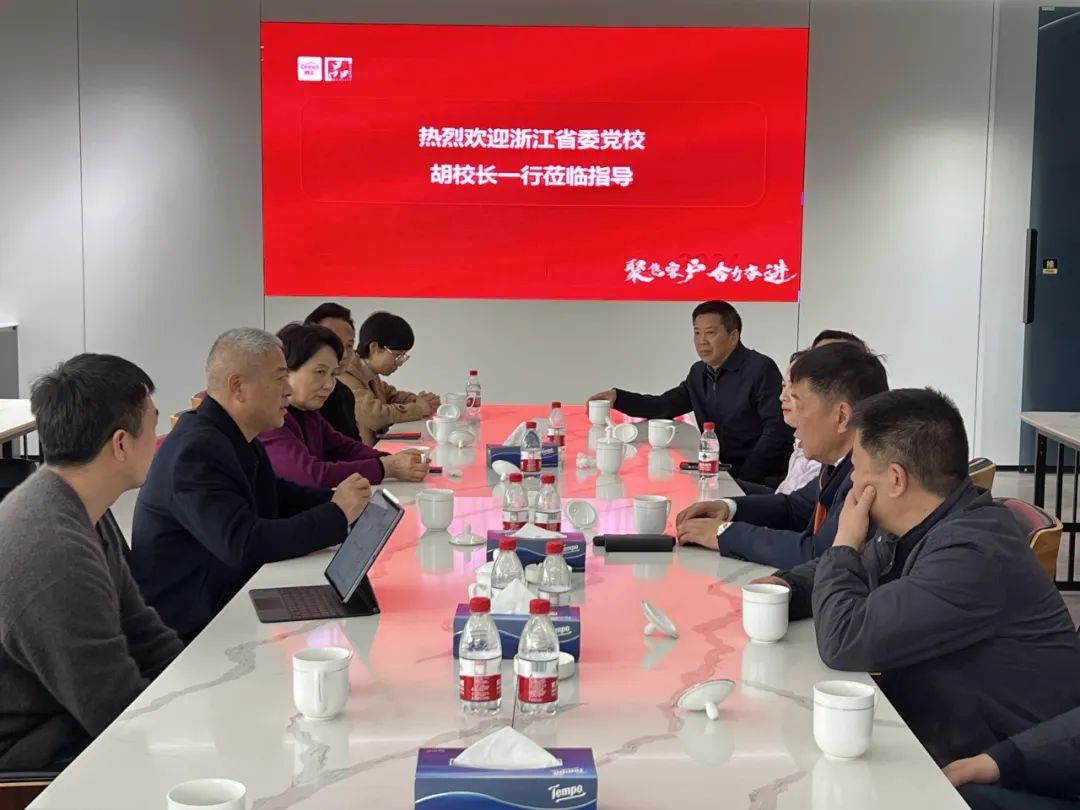 3月(yuè)14日(rì),中共浙江省委黨校(xiào)胡雲祥副校(xiào)長(cháng)一(yī)行(xíng)赴浙江鼎美智裝股份有限公司走訪調研裝配化(huà)頂牆門(mén)櫃材料在λ裝修內(nèi)裝領域的(de)實際落地(dì)運用(yòng)。