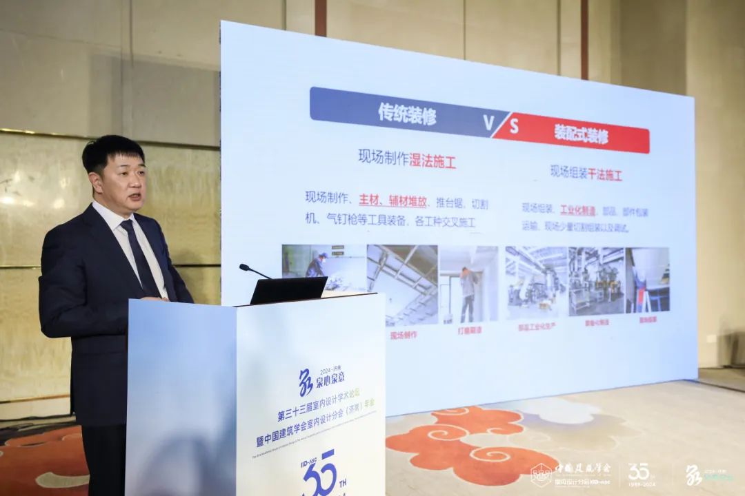 在年(nián)會(huì)華東(dōng)區(qū)論壇中,嘉興市(shì)秀洲區(qū)王店(diàn)集成裝飾(頂牆)協會(huì)會(huì)長(c♦háng)、浙江鼎美智裝股份有限公司董事(shì)長(cháng)張轲進行(xíng)主題演講。裝配式裝修是(shì)賦能(néng)“好(hǎo)房(fáng)子(zǐ)”建設的(de)重要(yào)組成部分(fēn),推進裝配式裝修底座是(shì)工(gōng)業(yè)化(huà),核心是(shì)數(shù)字化(huà)賦能(nén"g)。