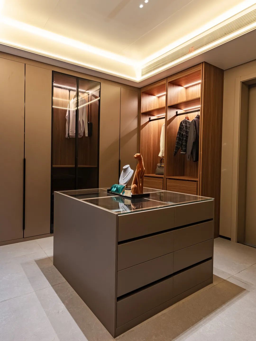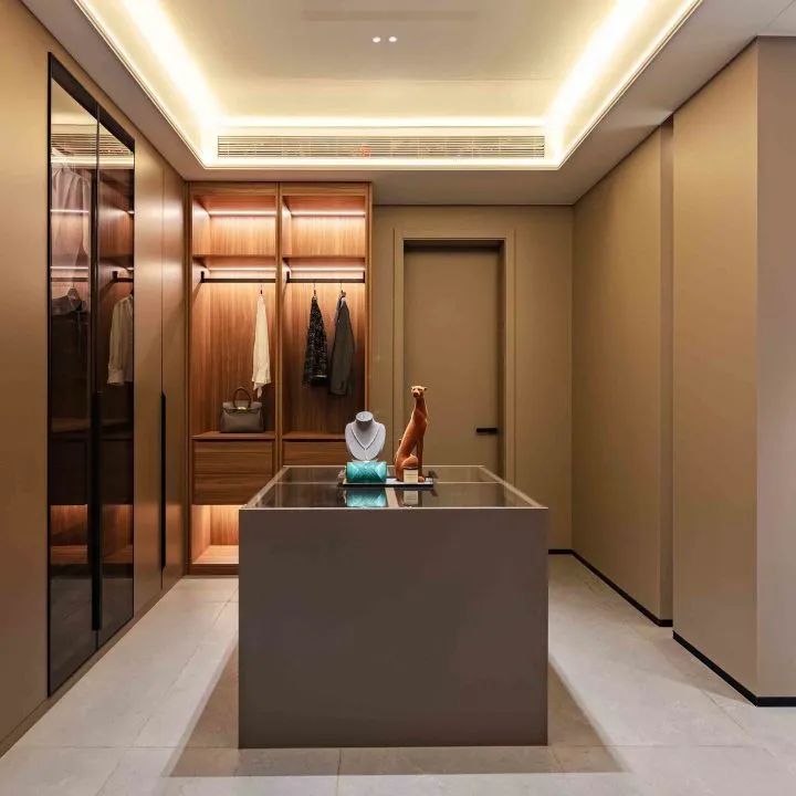 L型衣帽間(jiān)運用(yòng)拼接圍合設計(jì),
