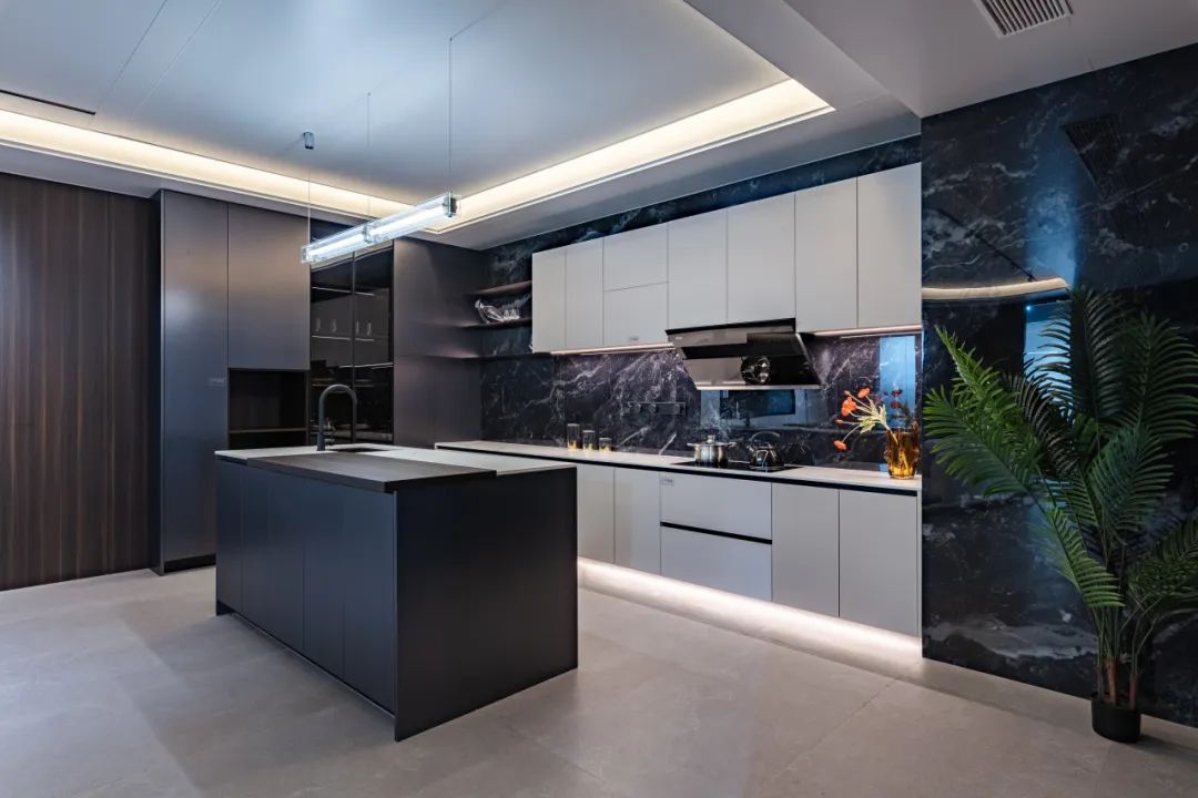 開(kāi)放(fàng)式廚房(fáng),用(yòng)流暢的(de)動線,承載起豐富的(de)烹饪功能(néng),餐廳島台+餐桌組合,形成交流的(de)絕佳場(βchǎng)所。