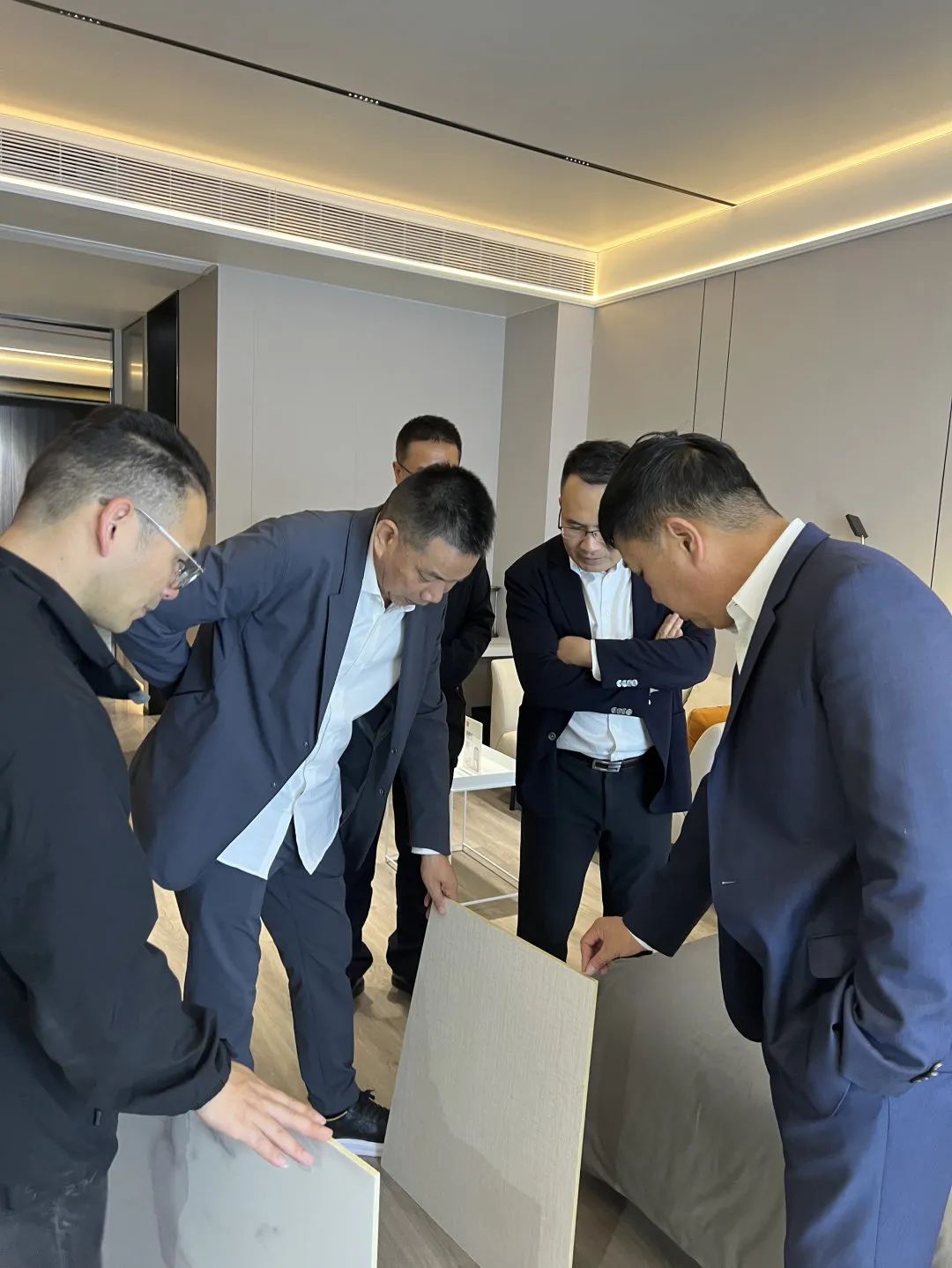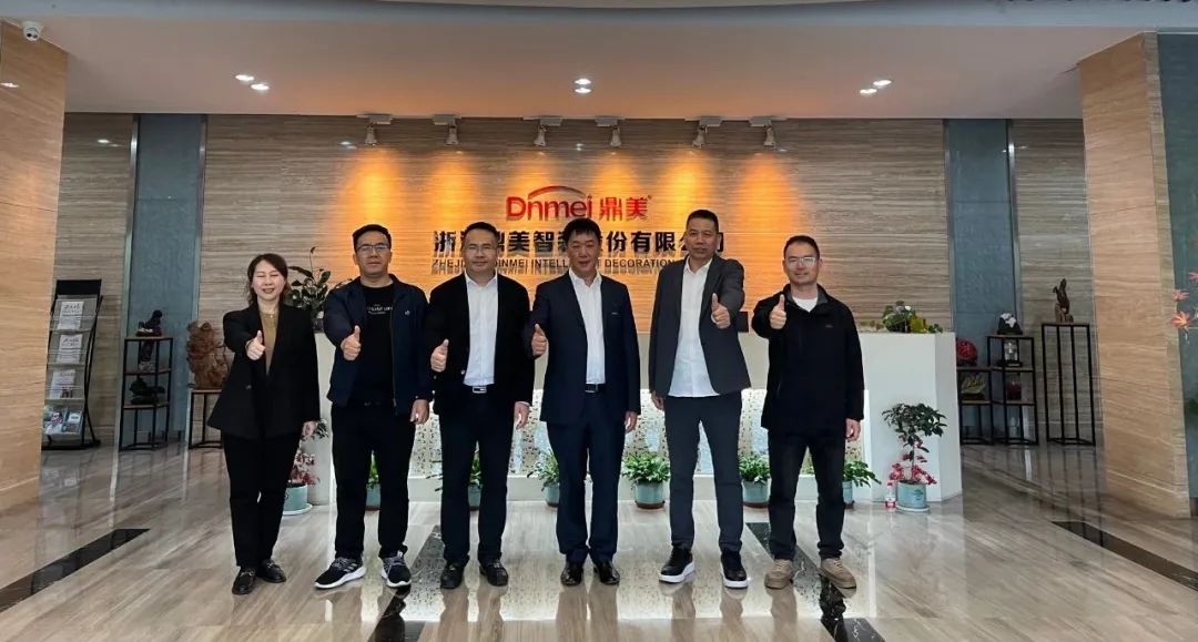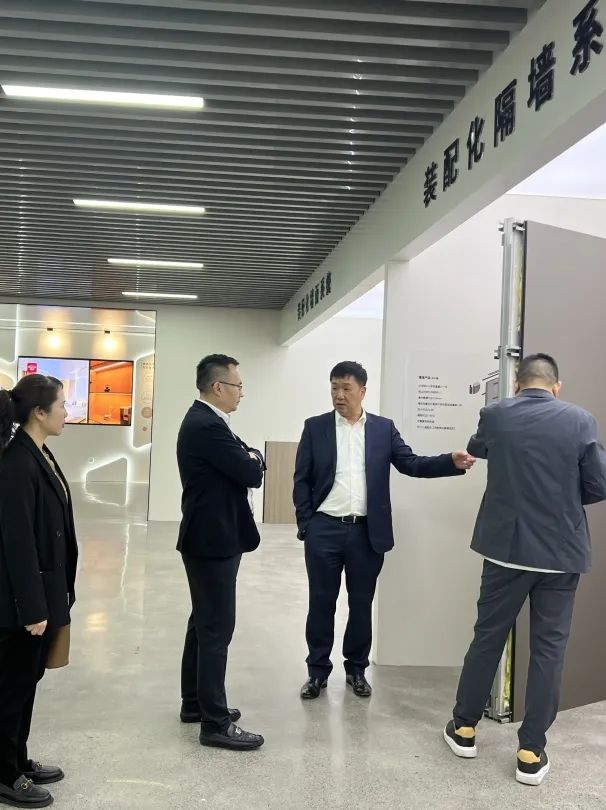 4月(yuè)20日(rì),廣西(xī)建築裝飾協會(huì)會(huì)長(cháng)龐耀國(guó)、廣西(xī)華輝裝飾集團有(yǒu)限公司董事(shì)長(chá₽ng)楊景忠、廣西(xī)華輝裝飾集團有(yǒu)限公司副總裁覃祖榮、廣西(xī)建築裝飾協會(huì)副秘書(shū)長(cháng)陳雪(xuě)玲等赴浙江鼎美智>裝股份有限公司調研裝配化(huà)裝修,浙江省建築裝飾行(xíng)業(yè)協會(huì)秘書(shū)長(cháng)吳建挺陪同調研。
