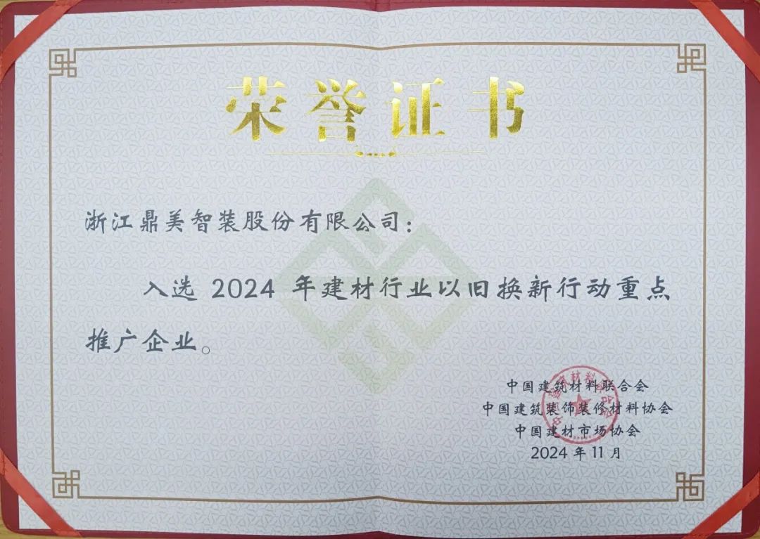 鼎美(měi)入選“2024年(nián)建材行(xíng)業(yè)以舊(jiù)換新行(xíng)動重©點推廣企業(yè)”