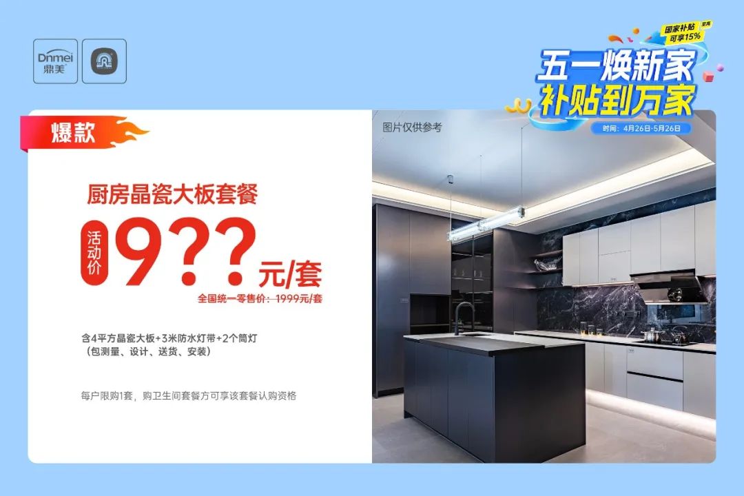 本次五一(yī)活動,鼎美(měi)針對(duì)廚衛空(kōng)間(jiān),推出5大(dà)套餐,不(bù)同¥吊頂與電(diàn)器(qì)的(de)組合方式,滿足不(bù)同家(jiā)裝需求,無論是(shì)新房(fáng)÷裝修還(hái)是(shì)廚衛舊(jiù)改,都(dōu)能(néng)讓您選到(dào)心儀的(de)方£案。