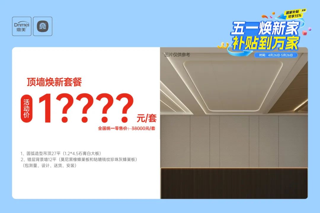 鼎美(měi)頂牆煥新套餐,以「流動圓弧吊頂×立體(tǐ)錯(cuò)層背景」的(de)黃(huáng)金(jīn)組合,以最實惠的(de)價格♣,滿足年(nián)輕生(shēng)活家(jiā)居審美(měi)。